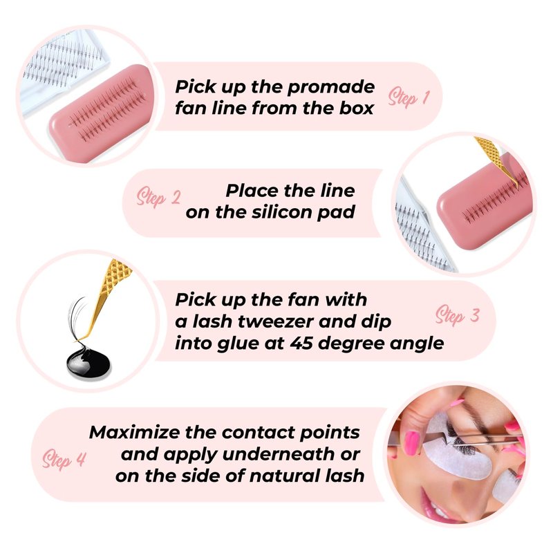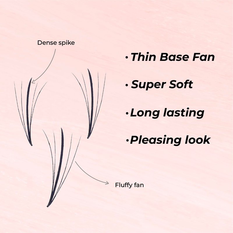 - 💟 [High Quality Eyelash Fan]: Volume fans that are produced by an eyelash extension supplier in advance. Our easy fan lash extensions is made of 100% PBT material which is soft, very dark, ready to be dipped and placed on your lash.