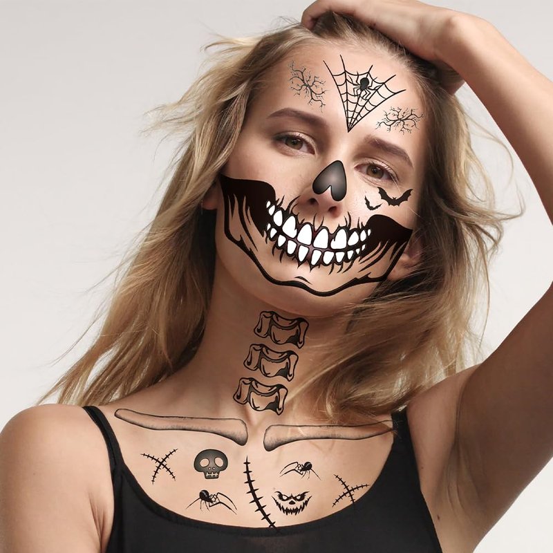 - Wide use:Our Halloween face tattoos can be applied to Halloween parties and the Day of The Dead, cosplay, performances, photography, masquerades, and so on