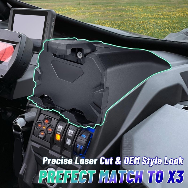 - 【AMPLE STORAGE SPACE】: The X3 Tablet Holder, also a storage box over the dash, provides 1 Gal(3.8L) Storage Space and works well to keep dust mud out off your phone, earphones, charger, tool, wallet, glasses, etc. the X3 Device holder box is a great addition to keep items organized, dry and clean