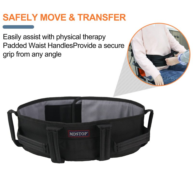 MDSTOP Transfer Belt with Padding Handles, Medical Nursing Safety Gait Patient Assist, for Bariatric/Pediatric/Elderly/Handicap/Occupational & Physical Therapy (L, Black)