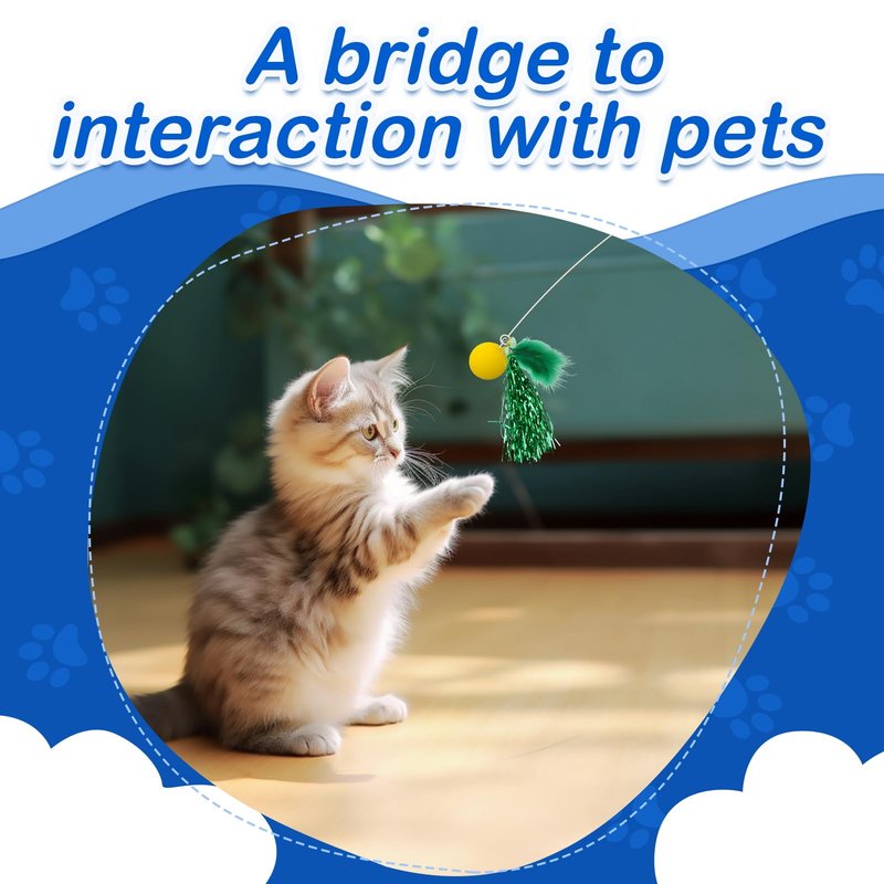 - Cat spring steel wire toy: A flexible steel wire with pompom ball is a great way to attract your cat’s attention. This toy is also very durable,Lightweight and comfortable to hold.