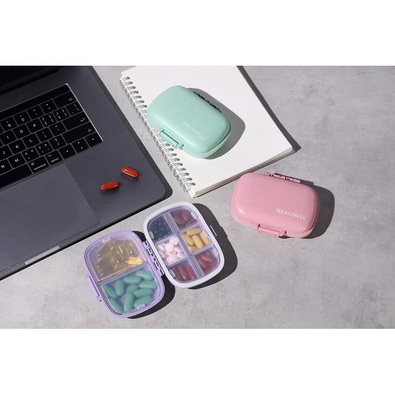 MEACOLIA 3 Pack 8 Compartments Travel Pill Organizer Moisture Proof Small Pill Box for Pocket Purse Daily Pill Case Portable Medicine Vitamin Holder Container ( Purple, Green, Pink )