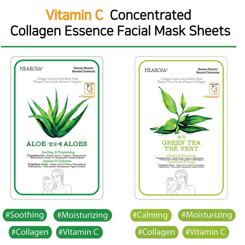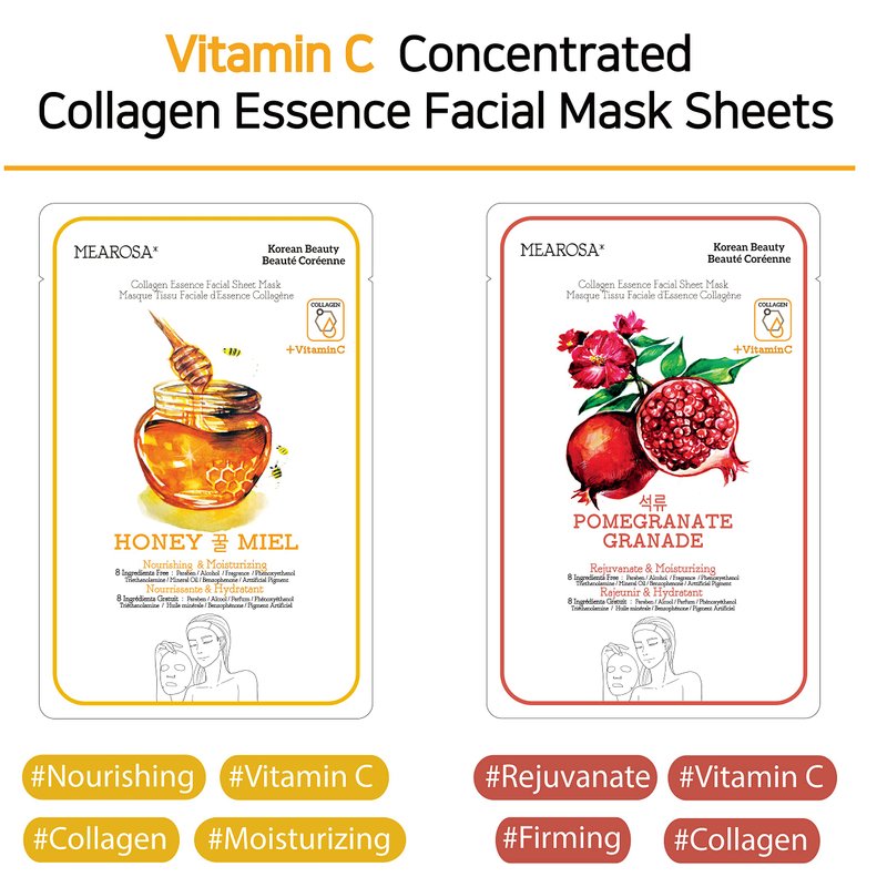 MEAROSA DESIGN Vitamin C Collagen Firming Essence Face Mask Beauty Facial Mask Sheet Mask Korea Skin Care Premium Quality (8 pack)
