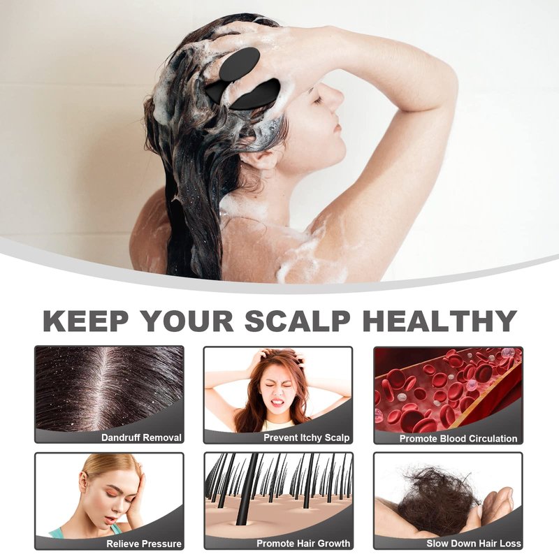 Meartchy Silicone Scalp Massager Shampoo Brush, Scalp Brush for Hair Growth & Dandruff Removal, Hair Scrubber Scalp Stimulator Exfoliator Brush with Soft Bristles for Wet Dry Scalp Care (Black)