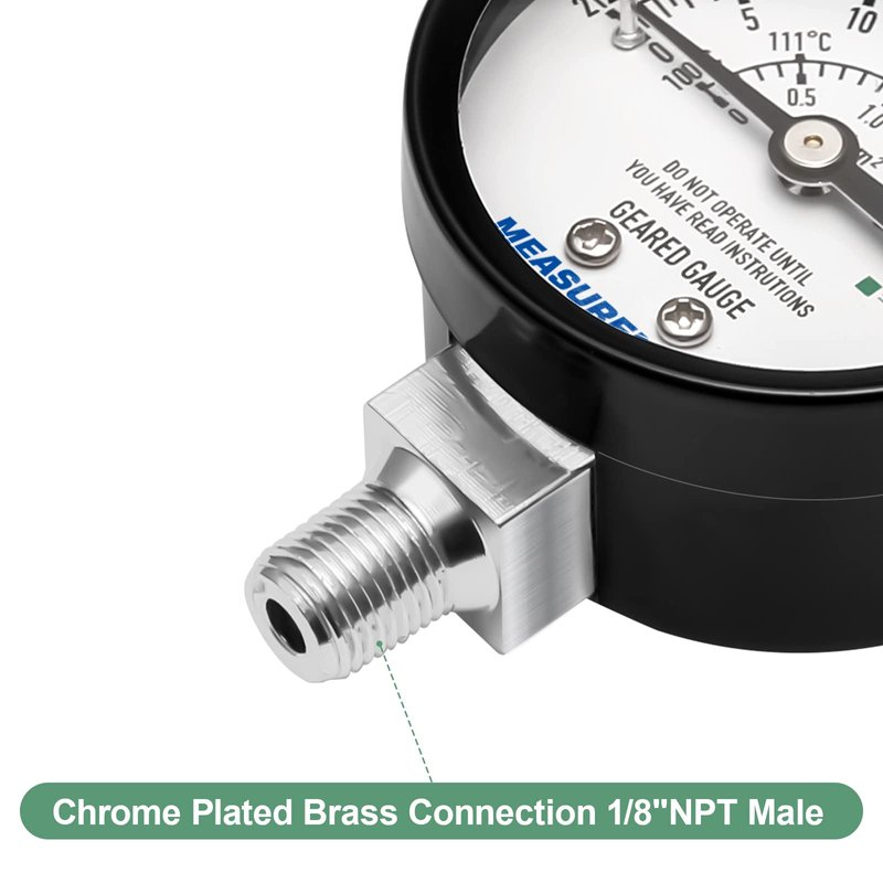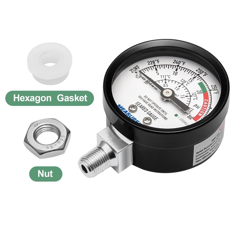 MEASUREMAN Black Steel Pressure Cooker Gauge, Pressure Canner Gauge, Steam Pressure Gauge, 2" Dial, Lower Mount, Including Hexagon Gasket and Nut