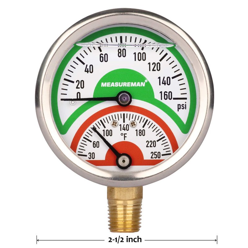 - Pressure range: 0-160psi/30-250 deg F, easy to read