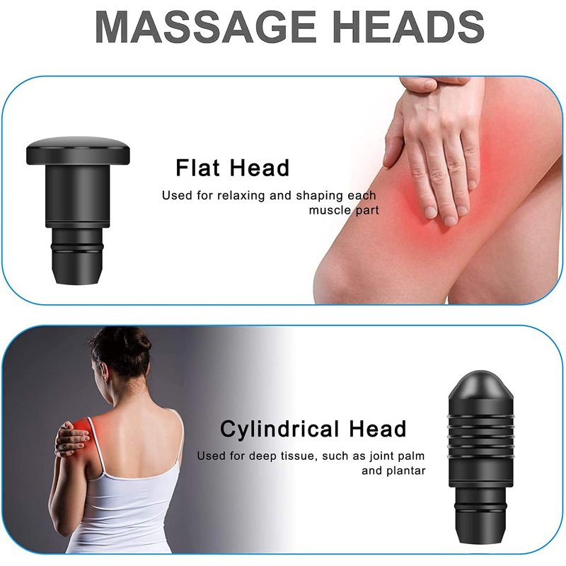 - Each massage head comes with a rubber collar for protection and a non-slip effect. You can also adjust the diameter of the fit to your liking.