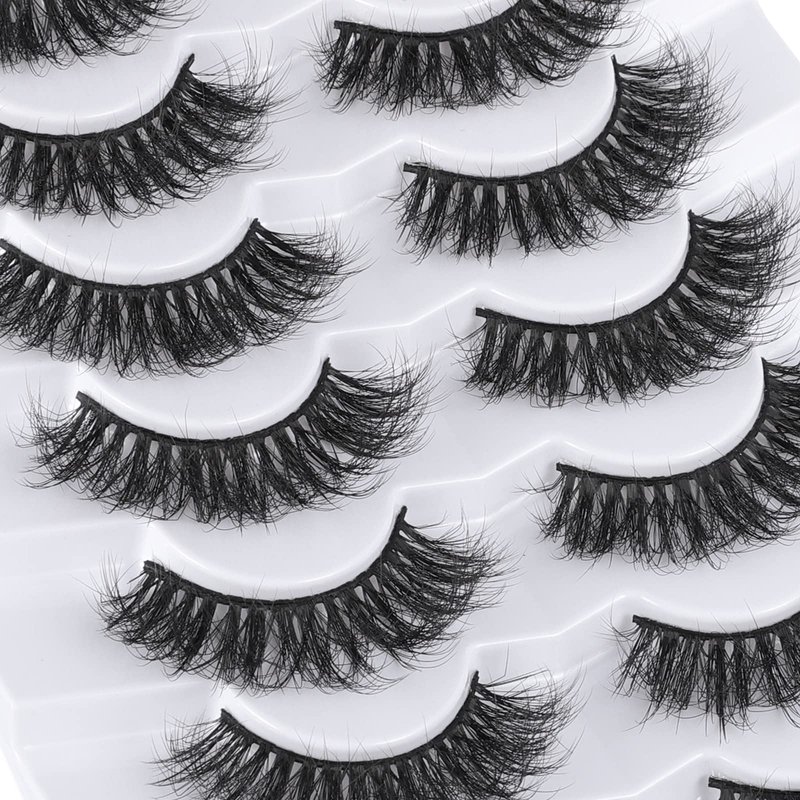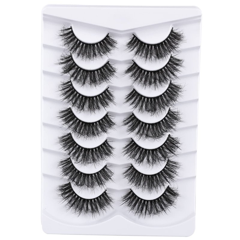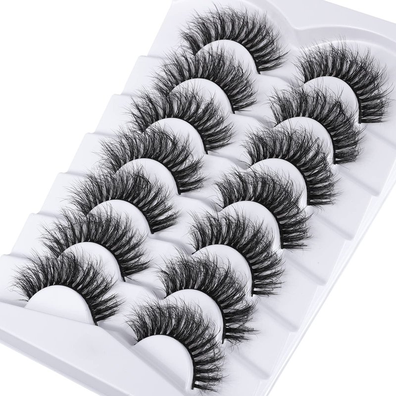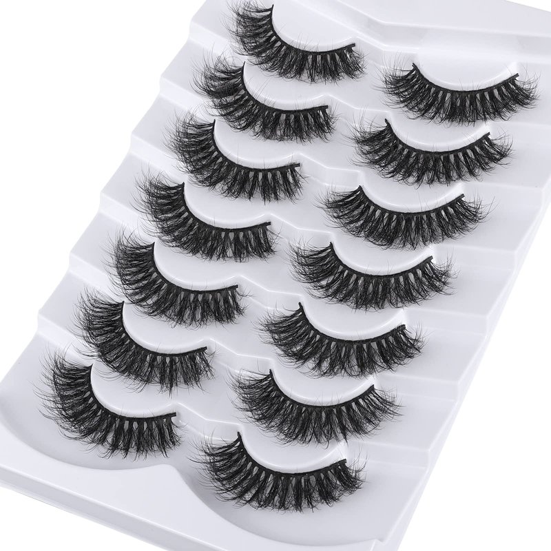 Mebver Lashes Eyelashes 8D Fluffy False Eyelashes Wispy Faux Mink Lashes Light Weight Fake Eyelashes Cat Eye Lashes 7 Pairs Pack