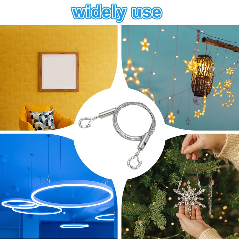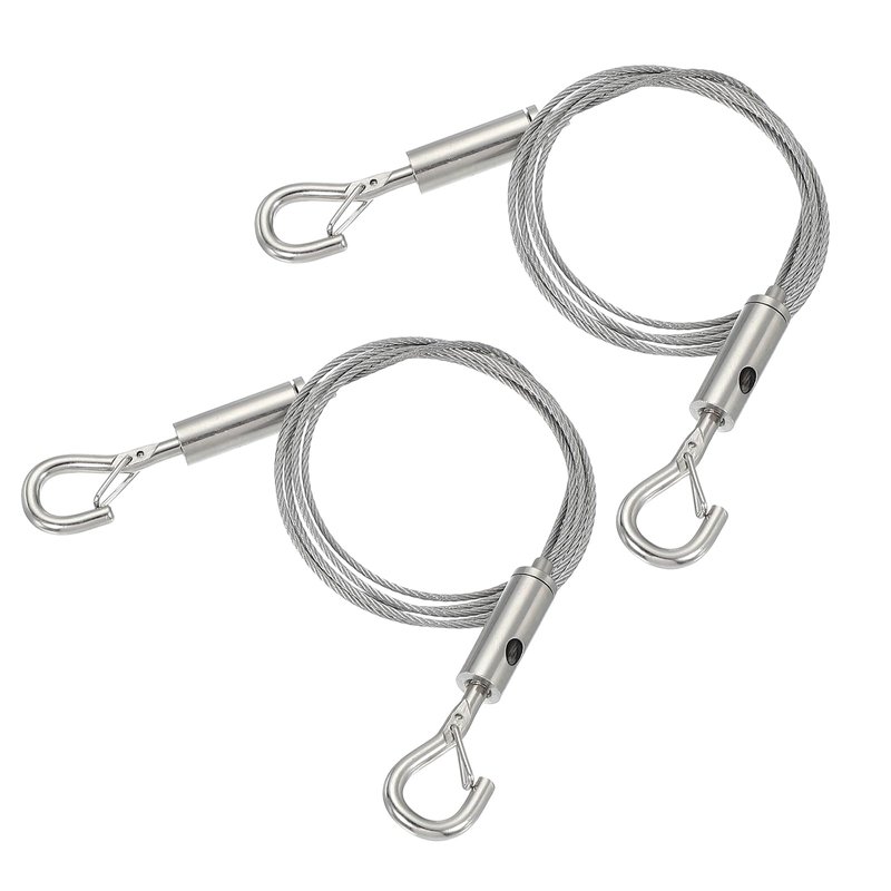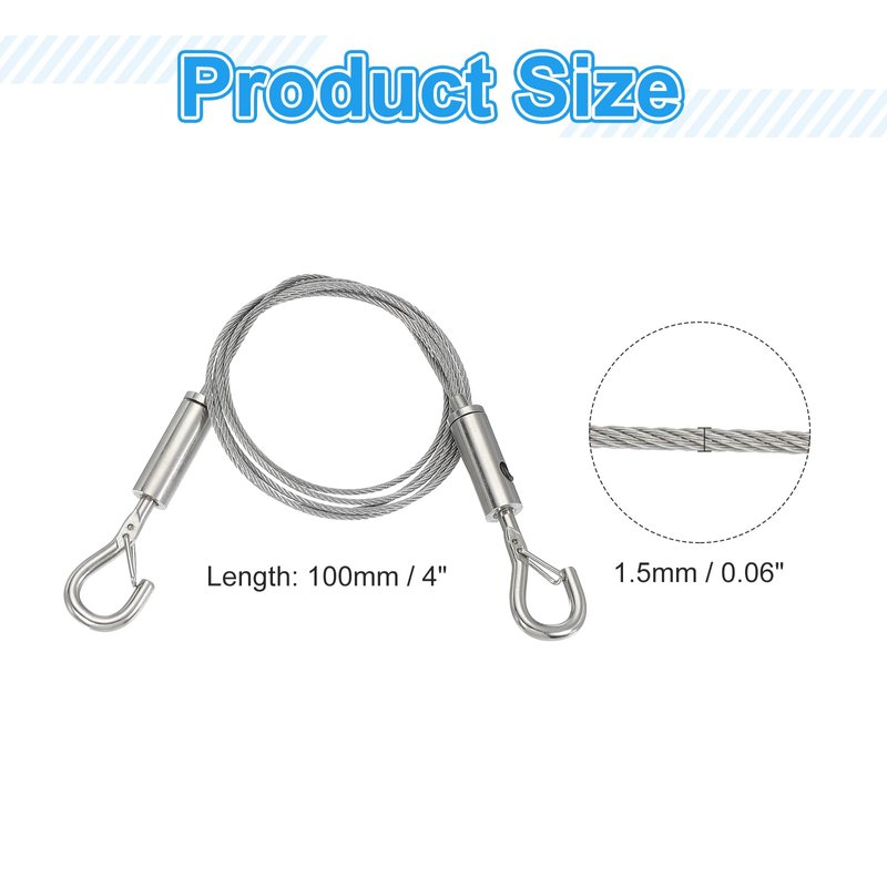 MECCANIXITY 100 x 1.5mm Adjustable Hanging Wires Kit, Heavy Duty Stainless Steel Wire Rope with Double Hooks for Picture Photo Light LED Screen Curtain Billboards DIY Mounting Clamp Pack of 2
