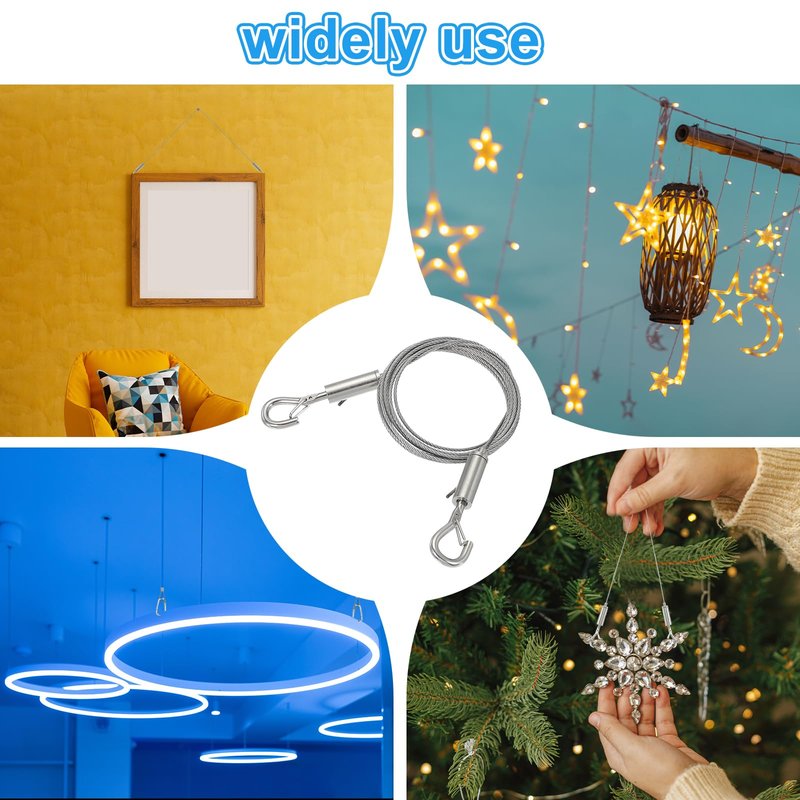 MECCANIXITY 200 x 1.5mm Adjustable Hanging Wires Kit, Heavy Duty Stainless Steel Wire Rope with Double Hooks for Picture Photo Light LED Screen Curtain Billboards DIY Mounting Clamp Pack of 4