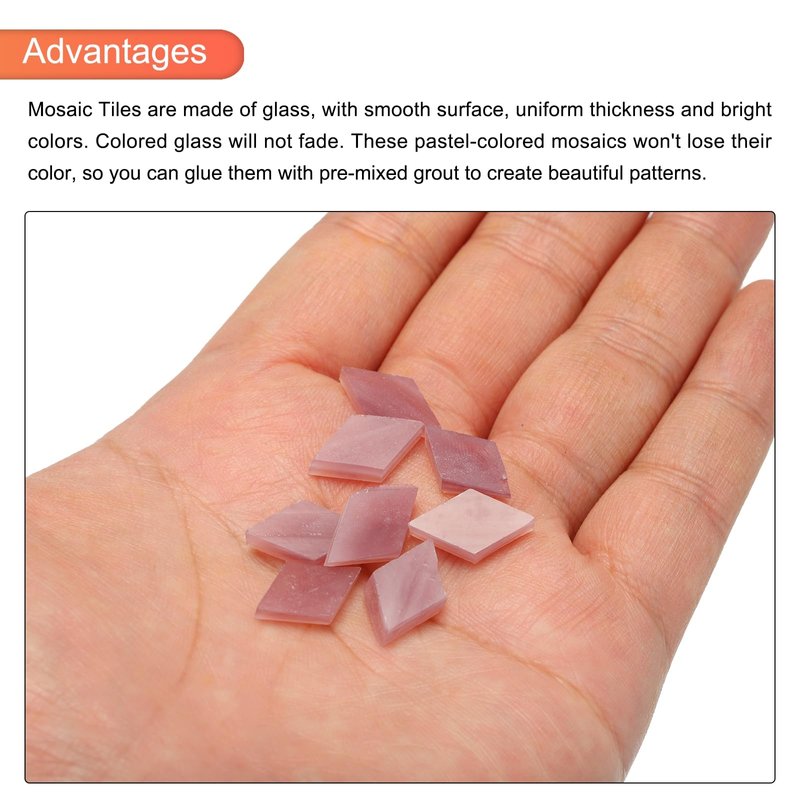 - Mosaic Tiles are made of glass, with smooth surface, uniform thickness and bright colors. Colored glass will not fade. These pastel-colored mosaics won't lose their color, so you can glue them with pre-mixed grout to create beautiful patterns. Mosaic glass pieces are not limited by your imagination.