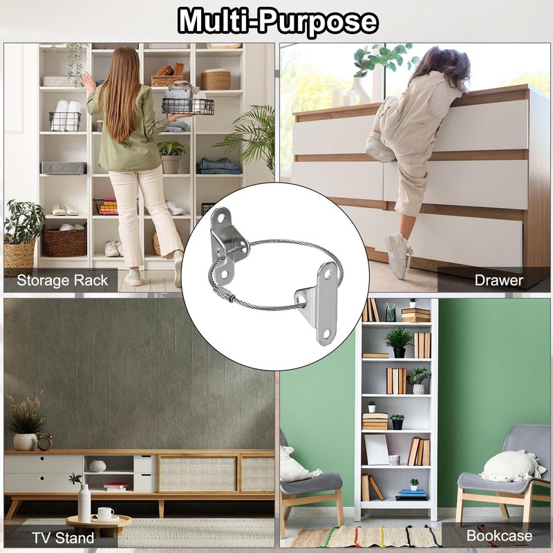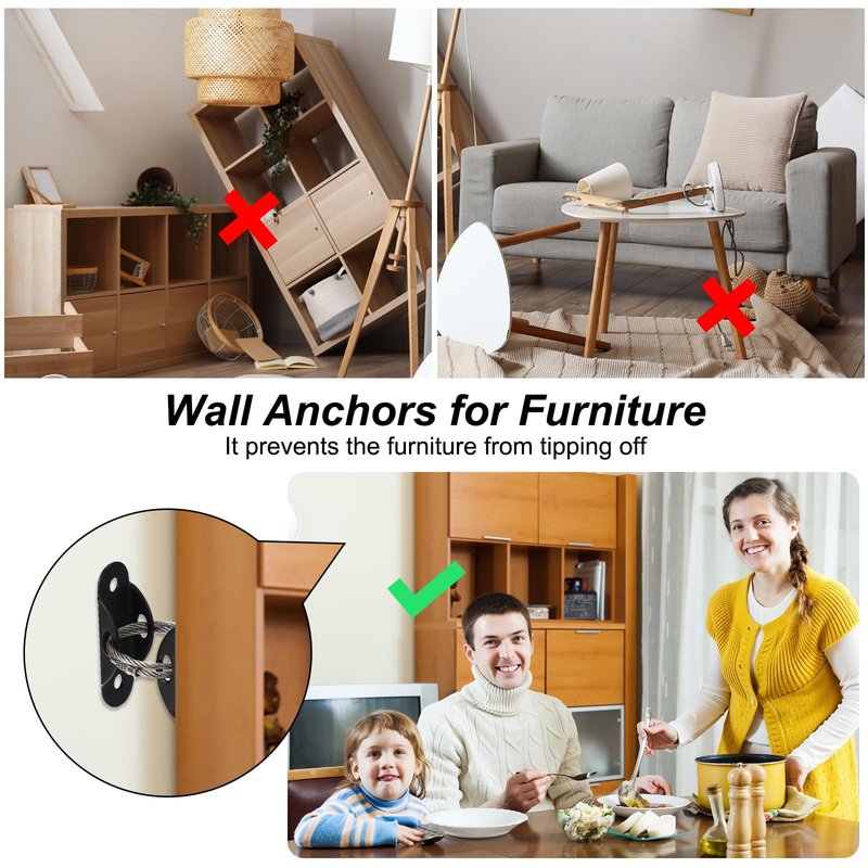 - Feature: The reinforced base enhances its load-bearing capacity, allowing it to securely anchors even heavy furniture to the wall. The sturdy steel wire rope provides reliable support, while furniture anchors are small and not easily exposed, maintaining the aesthetic appeal of your furnishings