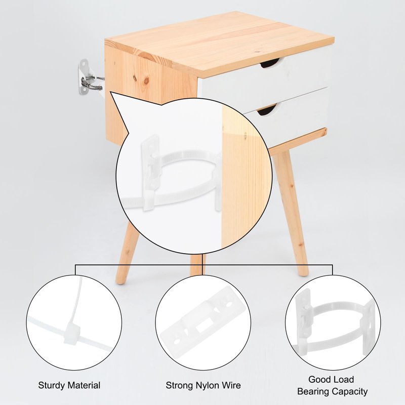 Feature: The reinforced base enhances its load-bearing capacity, allowing it to securely anchors even heavy furniture to the wall. The sturdy steel wire rope provides reliable support, while furniture anchors are small and not easily exposed, maintaining the aesthetic appeal of your furnishings.