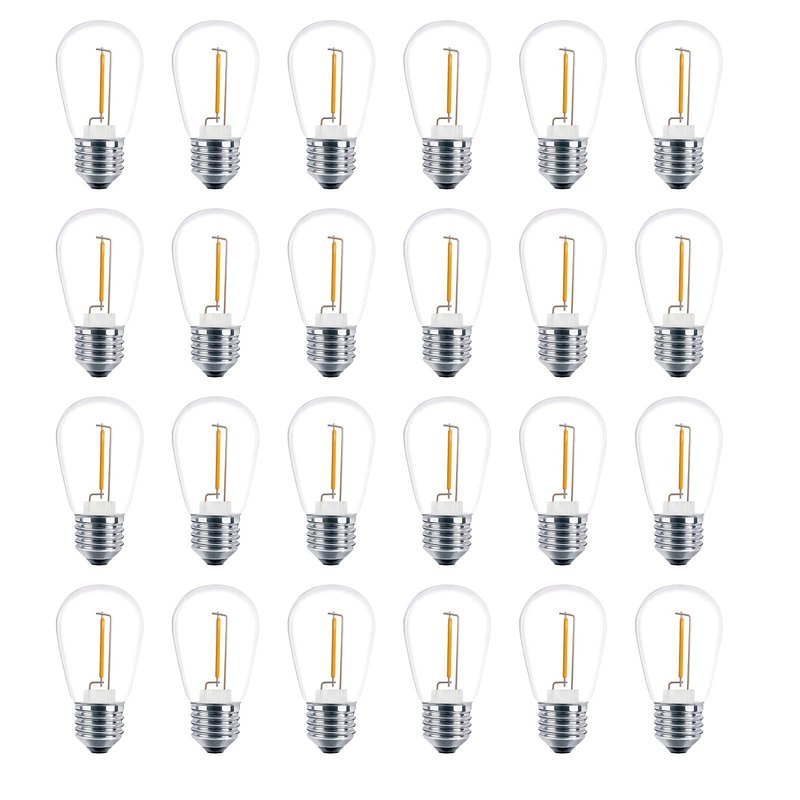 24 Pack LED S14 Replacement Light Bulbs, Meconard Shatterproof Outdoor String Light Bulbs, 1 Watt to Replace 11Watts Incandescent Bulb, E26 Regular Medium Screw Base,2200K Warm White,Non-Dimmable
