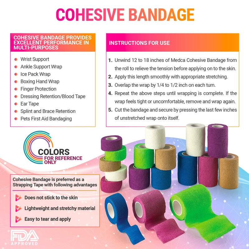 - COHESIVE QUALITY- The bandage is extra large and adheres to itself.
