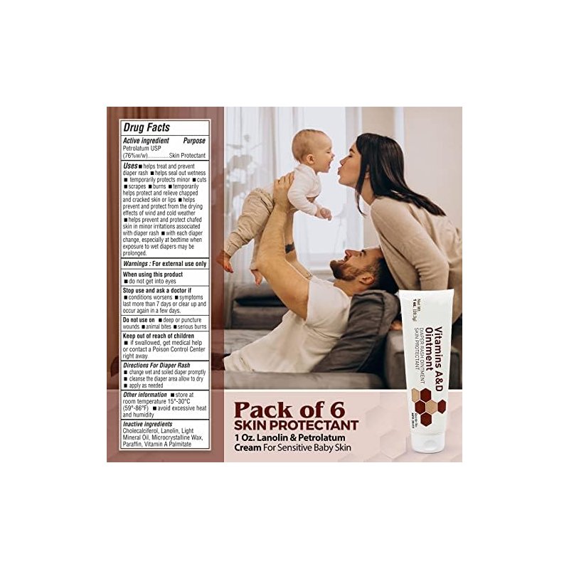 - MEDca Vitamin A & D Diaper Rash Ointment- Protectant Cream For Sensitive Baby Skin - Lanolin & Petrolatum Formula, Dry-Cracked Hands/Feet/Face Skin, 1oz Tube, Pack of 6