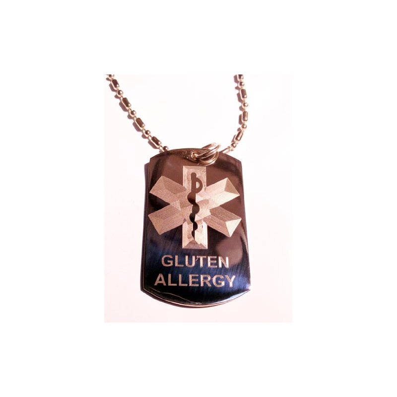 Medical Emergency Gluten Allergy Logo Symbols - Military Dog Tag Luggage Tag Key Chain Keychain Metal Chain Necklace