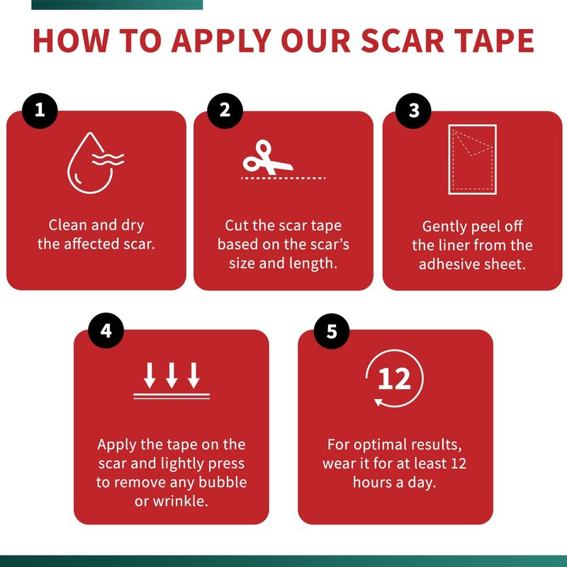 - WATERPROOF & REUSABLE - Our silicone scar tape/silicone strips for scar healing is non-irritating to the skin and can be worn for up to 12 hours a day. These easy to cut, scar removal silicone tape are washable & can be re-stored on its roll sheet.