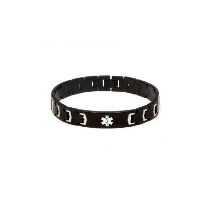 This is a high quality Black stainless steel link Bracelet. This bracelet is pre-engraved "Diabetes on the underside of the medical symbol plate. Unisex Style. Available in 2 Sizes > This Bracelet Measures 7.5" or 8.5" inches in length and .5" wide.(2 oz. in weight) PLEASE SEND US A MESSAGE AFTER PURCHASE WITH THE SIZE YOU PREFER.