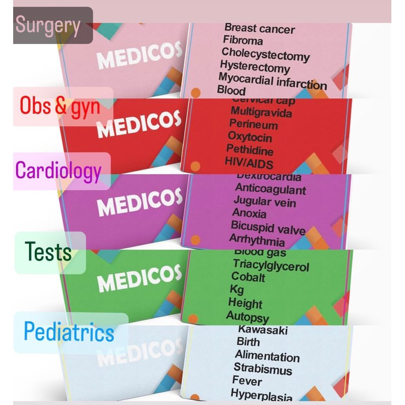 - Test Your Skills - In Medicos doctor games, you have 60 seconds to explain medical terms to your teammates. With 364 unique flashcards covering 2000+ medical terminologies, our unique nursing student essentials test your knowledge across various specialties.