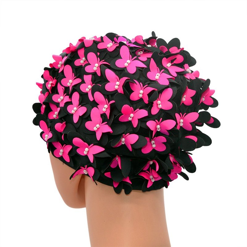 Medifier Vintage Swim Cap Floral Petal Retro Style Bathing Caps for Women Rose Red