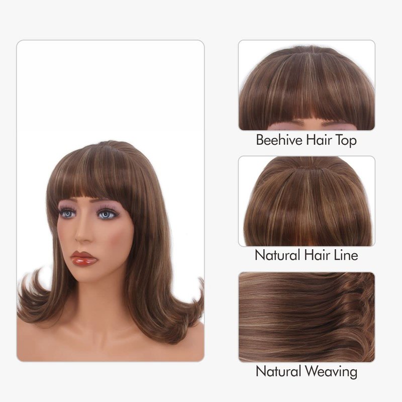 MEDISIFA Brown Highlight 60s Beehive Wigs for Women Pinup Pelucas 50s Synthetic Hair Wig for Women Ladies Daily Used Costume Cosplay Fancy Dress 1960s Retro Wigs
