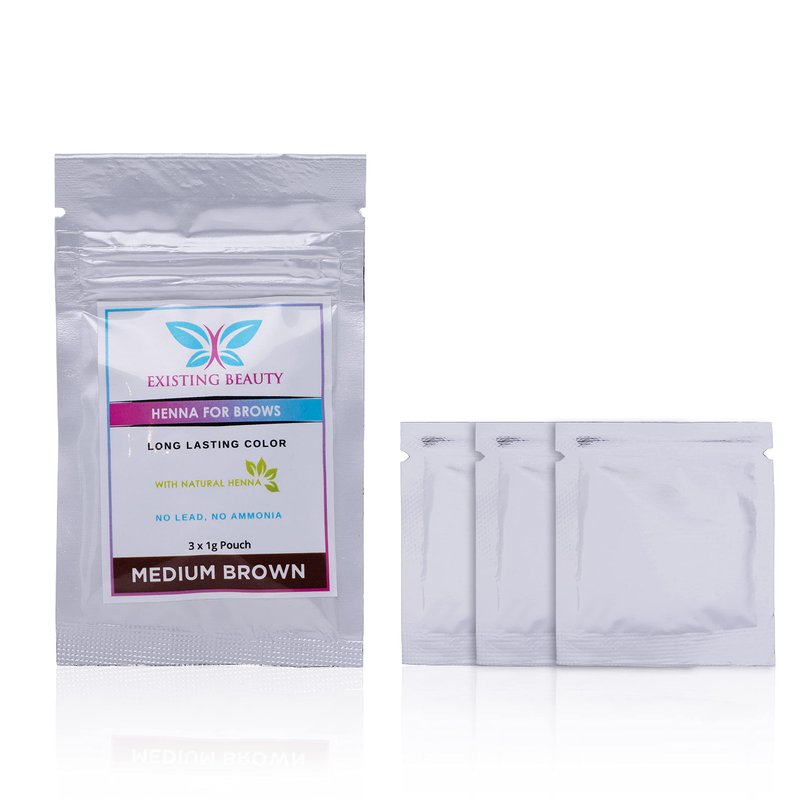 Medium Brown Eyebrow Henna Tint for Eyebrow Color- Professional Henna Brow Kit Including Use Instructions and Mixing Bowl 3x 1g Packets Brow Dye by Existing Beauty