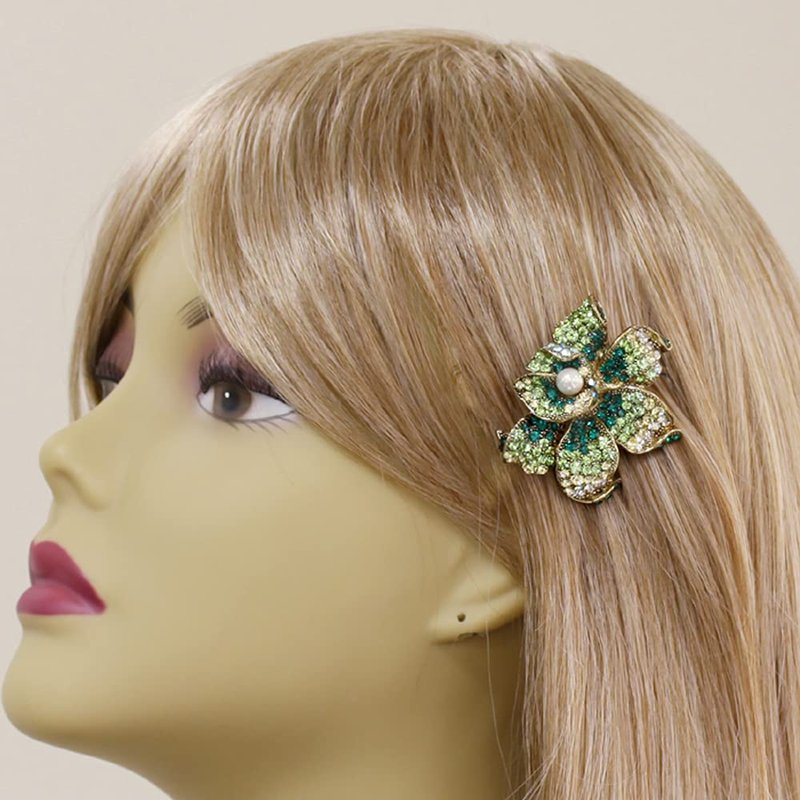 Medium Decorative Hair Comb Rhinestone Crystal Rose Simulated Pearl Bridal Hair Comb, Green