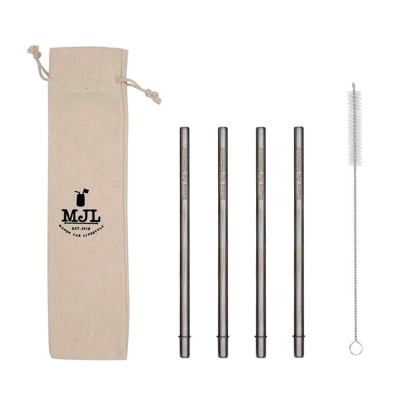- COMPLETE SET FOR ON-THE-GO & AT HOME: 4 Medium Metal Straws with Rounded Ends Plus a Straw Cleaner in a Cloth Storage Bag.