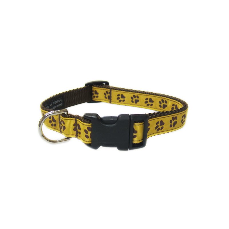 - Medium Yellow/Brown Puppy Paws Dog Collar: 3/4" wide, Adjusts 13-20" - Made in USA.