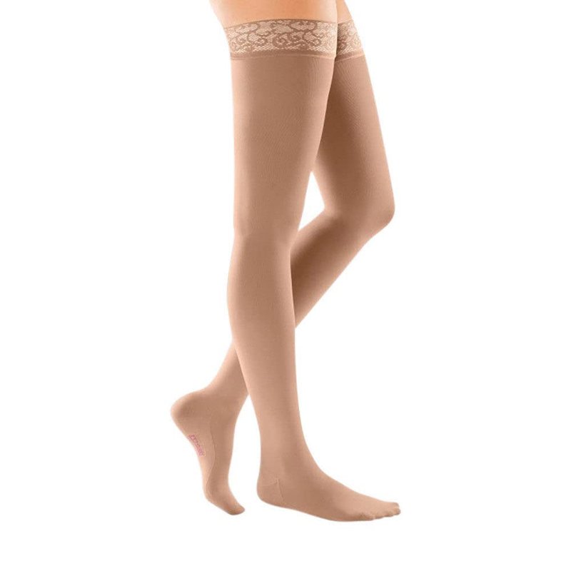 mediven comfort for women, 30-40 mmHg, Thigh High Stockings w/ Lace Top-Band, Closed Toe, Natural, II