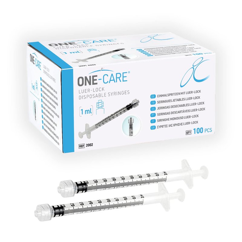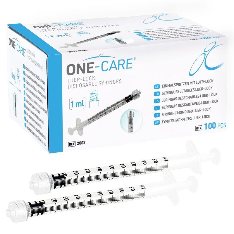 MediVena ONE-CARE 1ml Luer-Lock Syringes, Sterile, Low Dead Space, 100/bx Blister-Packed Syringes 1cc