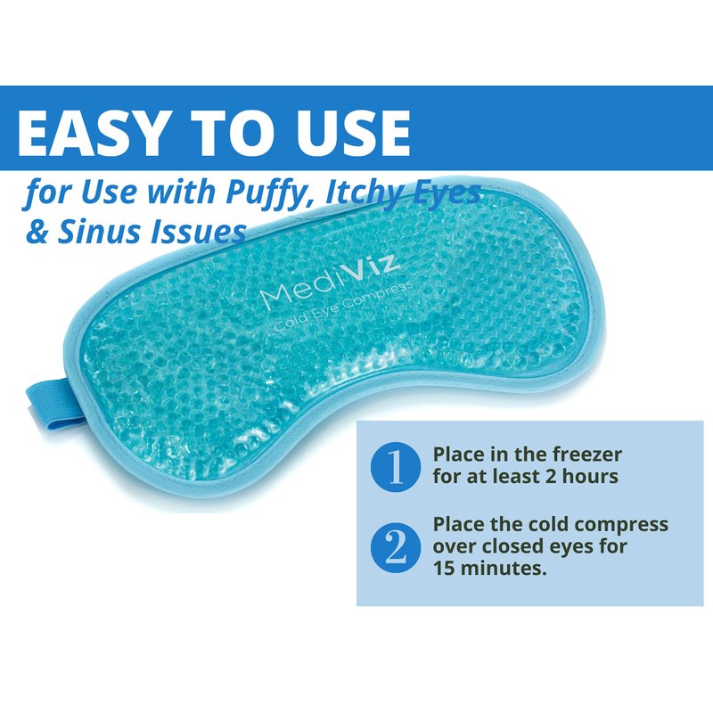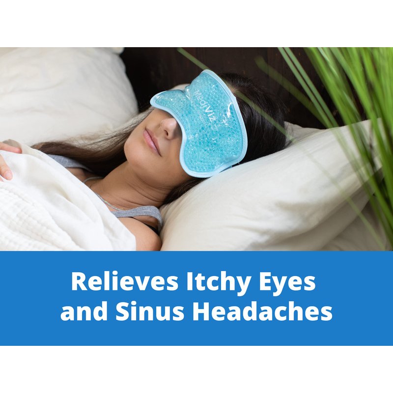 - Relieves Itchy Allergy Eyes and Sinus Headaches - Allergic Conjunctivitis caused by allergens cause great discomfort for many, and the MediViz cold eye mask helps relieve these symptoms. The MediViz cold eye mask also aids with headaches.