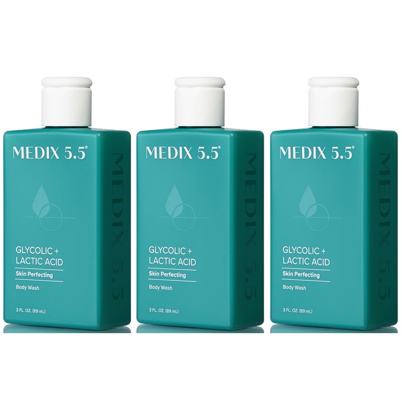 MEDIX Glycolic Acid Body Wash Exfoliating Body Cleanser KP Bump Eraser | AHA + Lactic Acid Anti Aging Exfoliant Wash | Keratosis Pilaris & Acne | Foaming Body & Face Wash, 3 Fl Oz Travel Size, 3-Pack