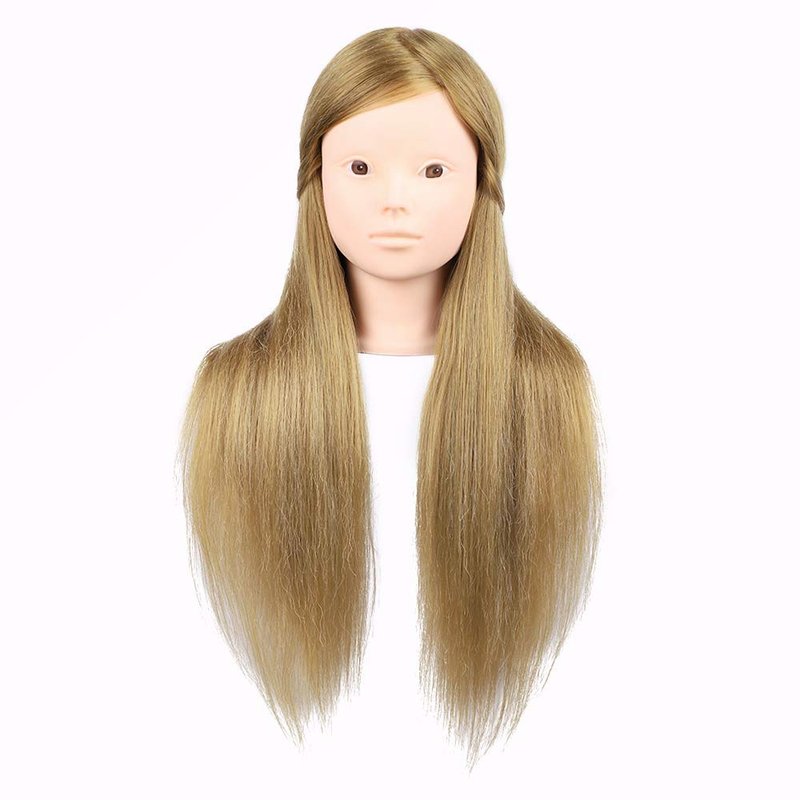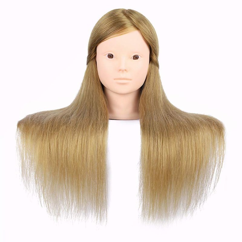 - Material: This 26 Inch Long Golden/Blond Brown Mannequin Head Cosmetology Manikin Doll Head Is Made of 50% High-Temperature Resistance Fiber Hair and 50% Real hair.