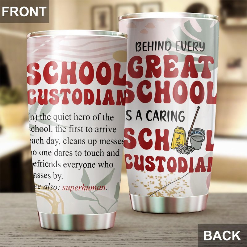 MEDROC School Custodian Tumbler Stainless Steel 20oz, Funny Custodian Gifts Bulk For Birthday Christmas, National Custodian Day Gifts For Women Men, Janitors Coffee Cup