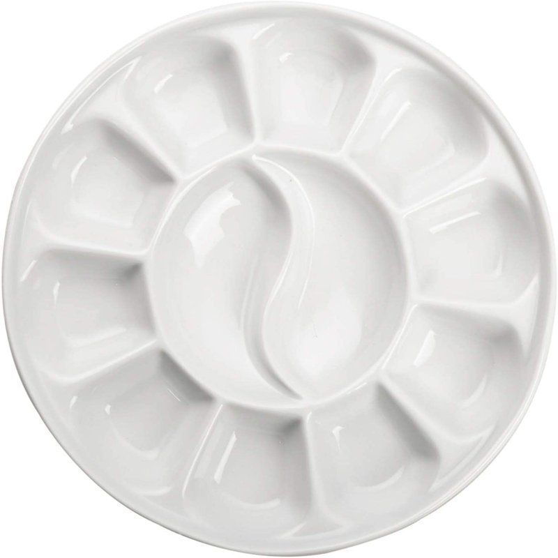 - This medium-weight porcelain palette with 12 wells is ideal for holding all types of paints, perfect for mixing various colors and it is super easy to clean,which will make you love it absolutely.
