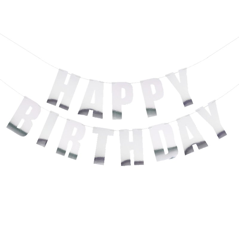 MEETINGU Happy Birthday Banner, Silver Happy Birthday Bunting Banner, Theme Party for Adult Kids Baby Shower Birthday Tea Party Changeable Party Decorations Hanging Décor
