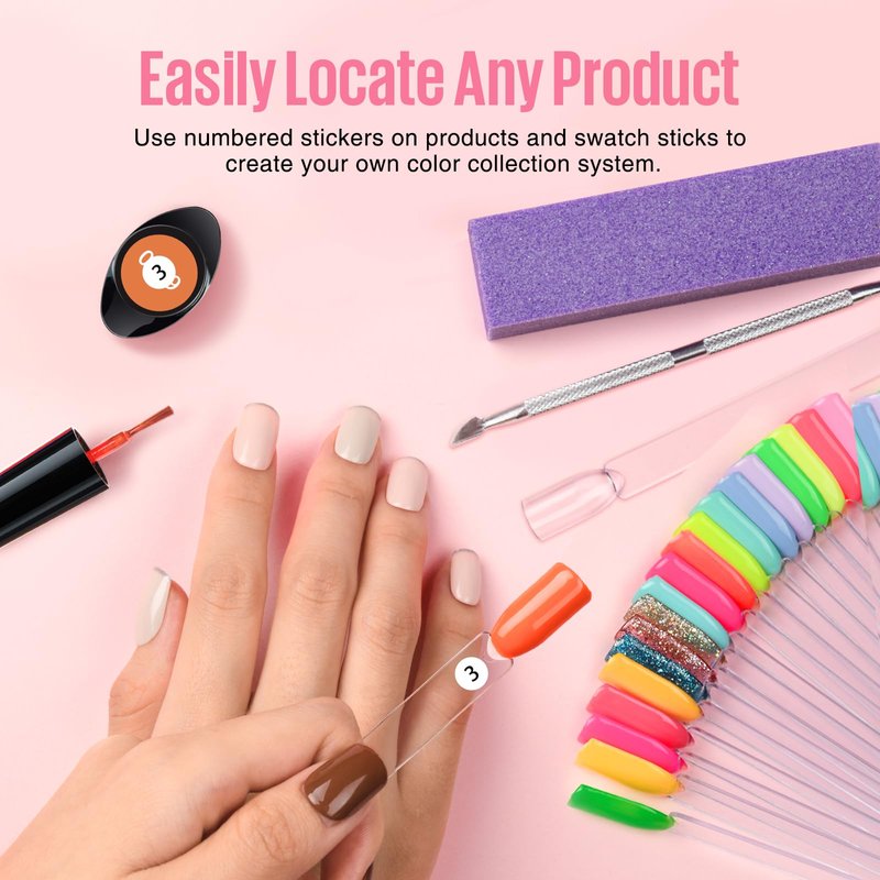 - Easy To Organize: Not only do these nail sample sticks categorize nail polish shades you can also break them off to file dip powder, if you own a lot of nail polish, with the nail color you can pick the color you want without opening the gel bottle caps