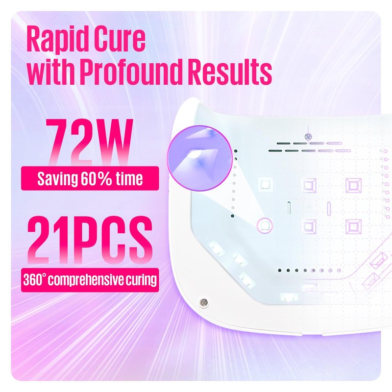 - Quick Drying & Save 60% Time: 72W uv nail lamp with 21pcs adjustable lighting element led beads make nail gel quickly drying. Our professional uv light for gel nails can shorten your curing time by 60% than other led nail lamps
