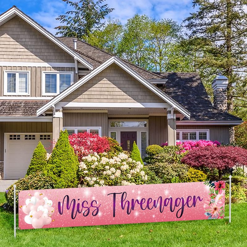 - 💟-Size:Little Miss Threenager banner measures 9.8 x 1.6 ft/298.7x48.8cm,which is suitable for the indoor and outdoor decoration.