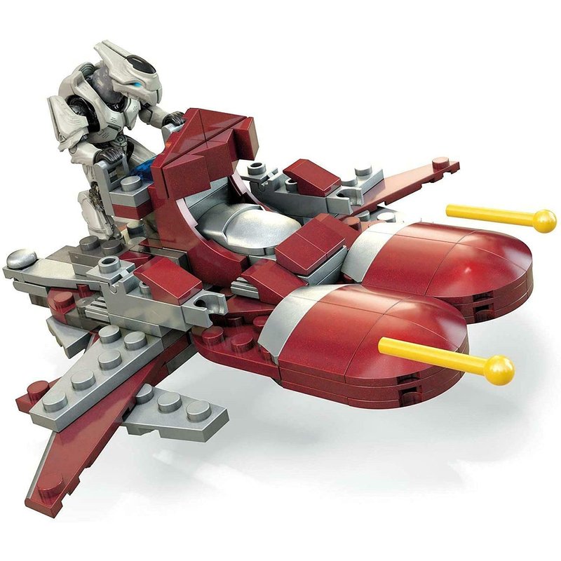 - 1. Halo Infinite inspired Banished Banshee vehicle building set with dual missile launchers, hidden compartment that opens, and clear rod with baseplate for display