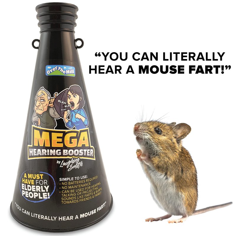 - BOOSTS HEARING & AMPLIFIES FUNNY SOUNDS - The Mega Hearing Booster will give your recipient super human level hearing. They will literally be able to hear a mouse fart! Can also be used as a megaphone for kids to blast funny fart sounds at their victims!