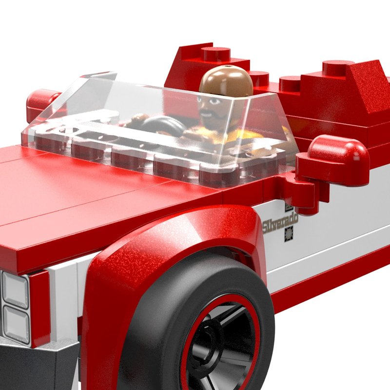 - 89-piece MEGA Hot Wheels '83 Chevy Silverado building toy with rolling wheels and driver's seat