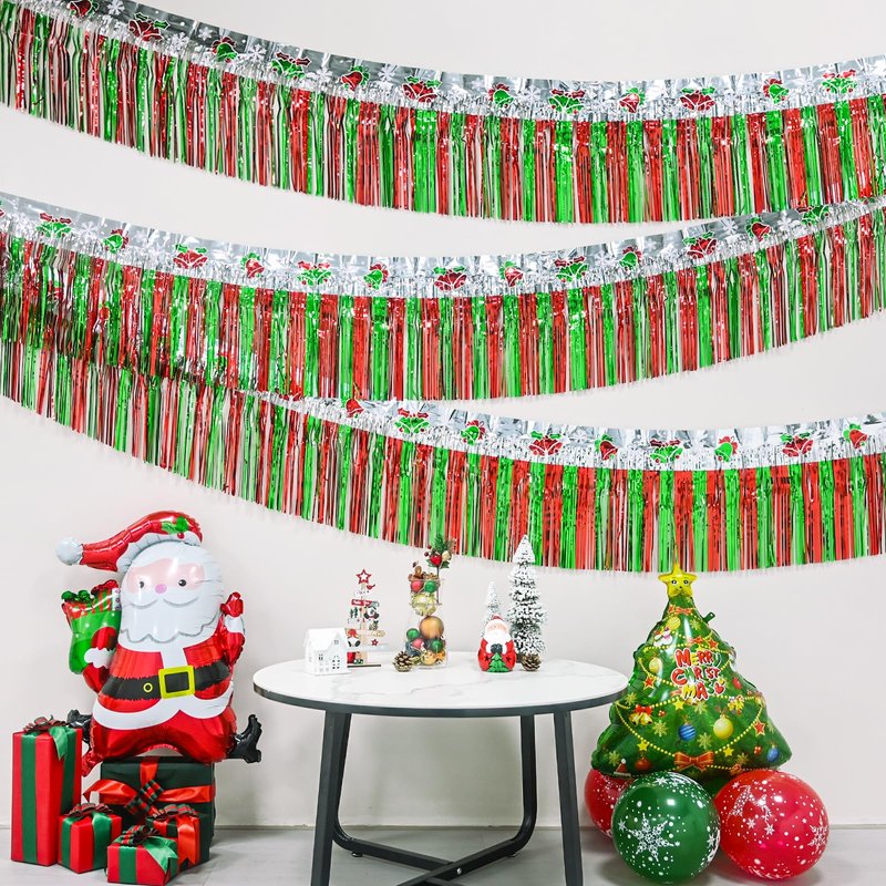 Christmas Decorations Red Silver and Green Tinsel Garland Foil Fringe Banner
