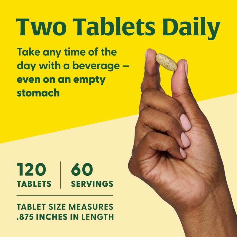 - Take any time of day, even on an empty stomach. 2 tablets per serving