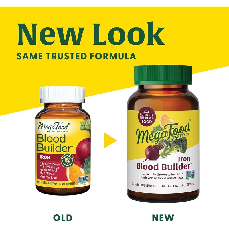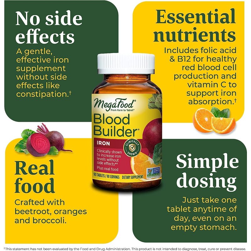 MegaFood Blood Builder - Iron Supplement Clinically Shown to Increase Iron Levels without Side Effects - Iron Supplement for Women with Vitamin C, Vitamin B12 and Folic Acid - Vegan - 90 Tabs