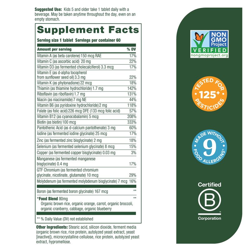 • Once–a-day mini tablet designed to support the growth and development of kids 5 and up. & help fill gaps in the diet