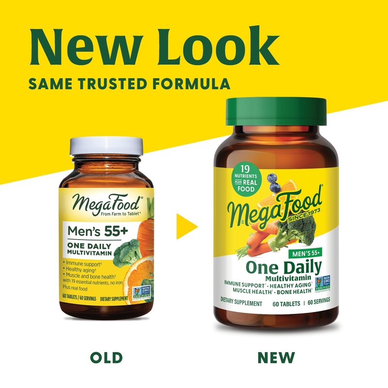 MegaFood Men's 55+ One Daily - Multivitamin for Men with Vitamin B12, Vitamin C, Vitamin D & Zinc - Optimal Aging & Immune Support Supplement - Vegetarian - Made Without 9 Food Allergens - 120 Tabs