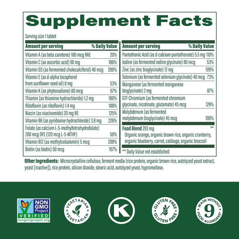 - All of our multivitamins are made with food-paired vitamins and fermented minerals, and can be taken any time of day, even on an empty stomach. 1 tablet daily